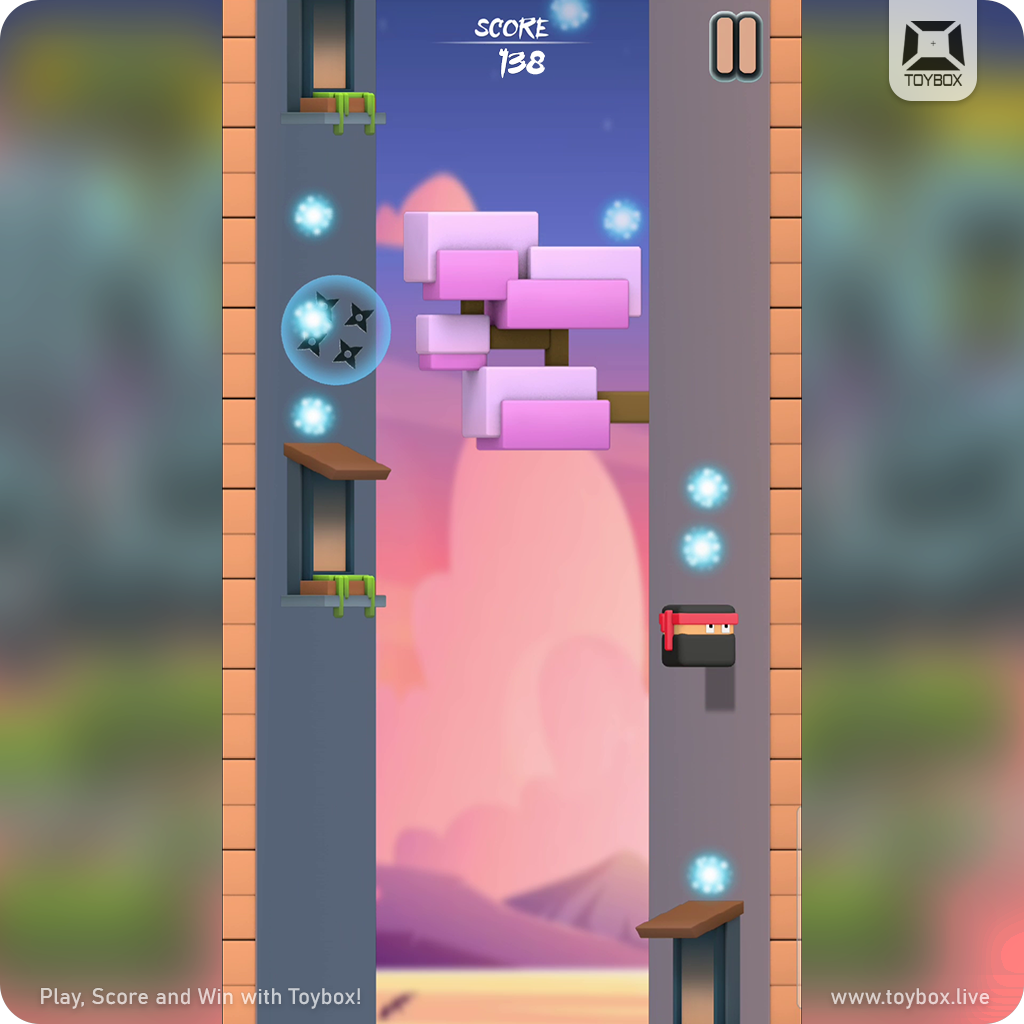 Keep adding climbing the walls avoiding the obstacles.